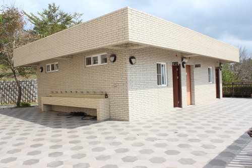 戶外空間配置如下,管理室、公廁、無障礙廁所、祭祀廣場、停車場、懷思草原及生態滯洪池。