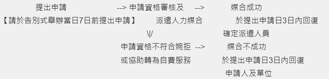 - 申請單位請詳細評估所需服務時間,若因現場突發狀況需延長手語翻譯服務時間者,請逕洽本會承辦人員由其處理,切勿逕行要求翻譯人員留駐,以免影響其個人行程及本會作業流程。