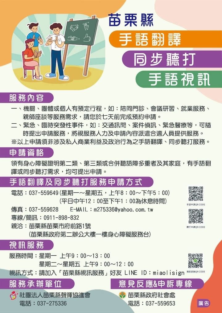 「苗栗縣視訊服務」LINE ID:miaolisign