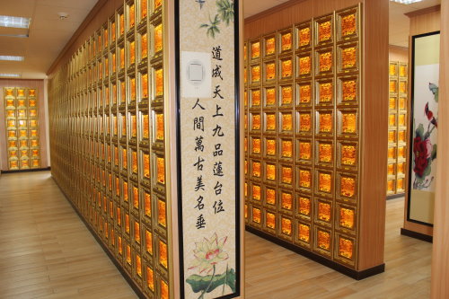園區說明:本市納骨堂為地下一層、地上四層之RC結構現代造型建築物。建築物坐落基地內最高點,象徵宗教信仰的崇高之心,利用地形塑造納骨堂雄偉壯碩之感,表達其心靈依歸之主要概念,讓民眾在懷念先人憂思之際,如置身在幽靜舒適的場景中,遠離城市喧囂,使身心靈因沉澱而得到慰藉及放鬆。建築物設計反應客家文化尊重自然、樸實淡雅之特色,採用簡潔、嶄新而現代化的建築造型與材料,打破傳統納骨堂予人嚴肅、難以親近的印象。